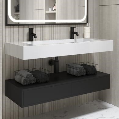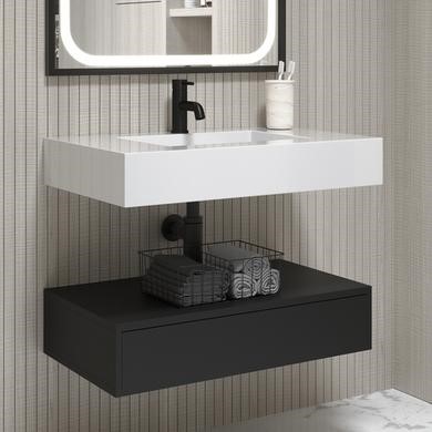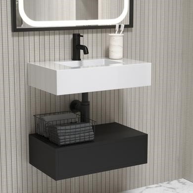 Deep and striking matt black finish vanity unit and gloss white resin basin combines modern sophistication with practicality