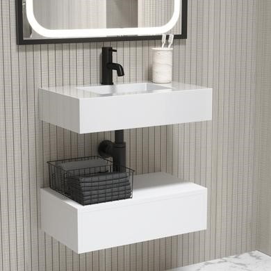 Deep and striking matt white finish vanity unit and gloss white resin basin combines modern sophistication with practicality