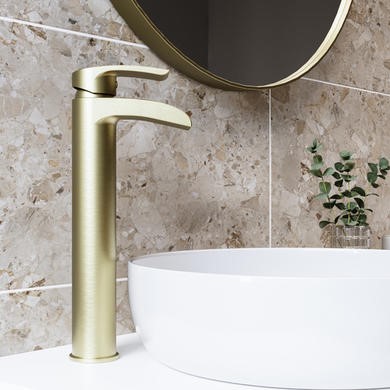 Rounded waterfall style tap to create that spa-like feeling in your bathroom