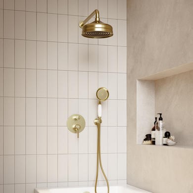 Includes a curved gooseneck arm and wide rainfall head, creating a striking centrepiece in your bathroom.