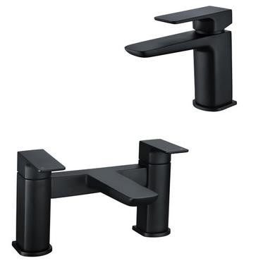 The basin tap features a smooth single lever, while the bath tap includes double lever control, providing precise temperature and water flow adjustment.