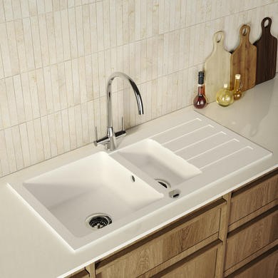 Timeless, easy-to-match design — the classic white gloss ceramic finish gives a clean, bright look that pairs beautifully with traditional and modern kitchens alike, making it a flexible choice when refreshing your home style.