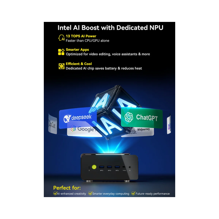 The NucBox Evo T1 combines power with portability in a sleek, space-saving design. Its compact footprint fits seamlessly into any workspace or home office without compromising performance. The modern aesthetic not only looks great but also allows for versatile placement options, making it a stylish and practical addition to your tech setup.