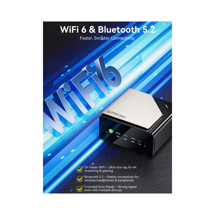 The GMK-EVOT1-01 comes preloaded with Windows 11 Pro, offering the latest in productivity and security features. Enjoy a sleek, intuitive interface, enhanced multitasking tools, and enterprise-grade security right out of the box. Windows 11 Pro ensures that your desktop PC is ready for both professional and personal use, with the latest software innovations at your fingertips.