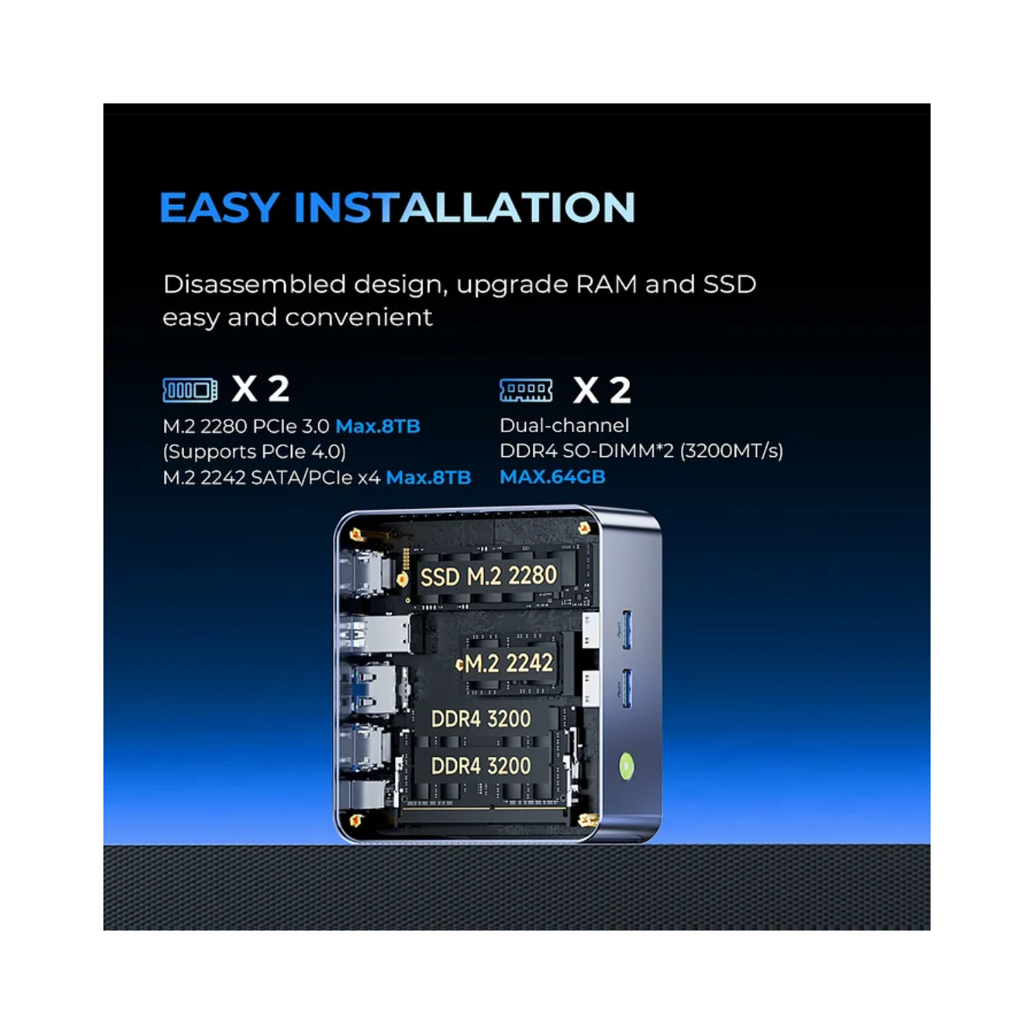 Packed with 16GB of DDR4 RAM and a lightning-fast 1TB NVMe SSD, the NucBox M3 Ultra ensures smooth performance and quick load times. Whether you’re launching large applications, editing high-resolution content, or running multiple programs at once, you’ll enjoy seamless responsiveness with ample space to store all your files, games, and media.