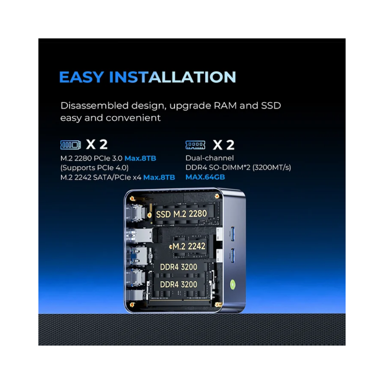 Designed for maximum efficiency in minimal space, the NucBox M3 Ultra offers powerful computing in an ultra-compact chassis. Perfect for home offices, entertainment setups, or business environments, its sleek and portable design makes it easy to place anywhere without compromising on performance.