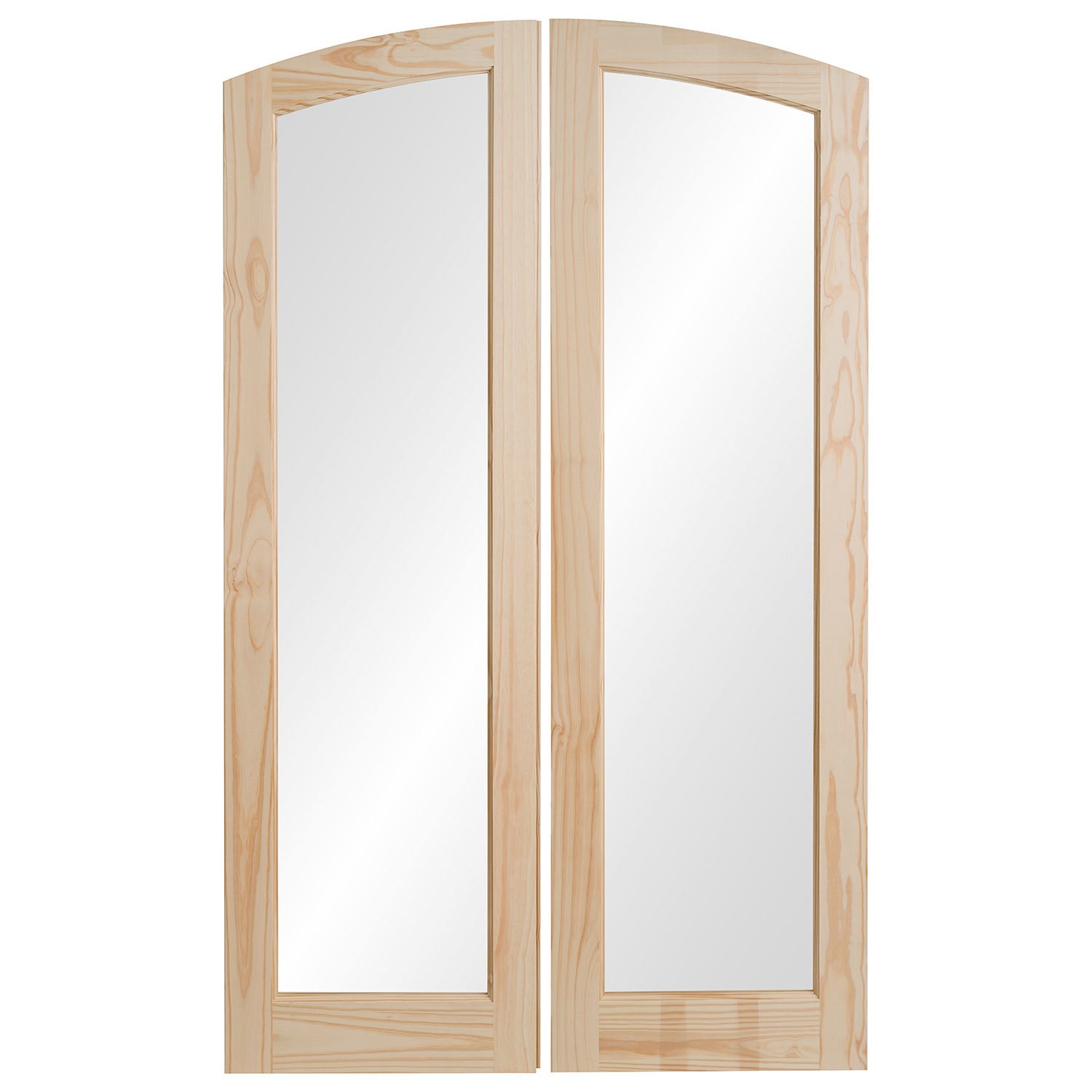Made from clear pine, these doors feature soft arched tops and full-length clear glass panels – ideal for enhancing both traditional and transitional interiors. The unfinished timber lets you customise the look to match your space, whether that’s a light stain to showcase the wood grain or a bold paint colour.