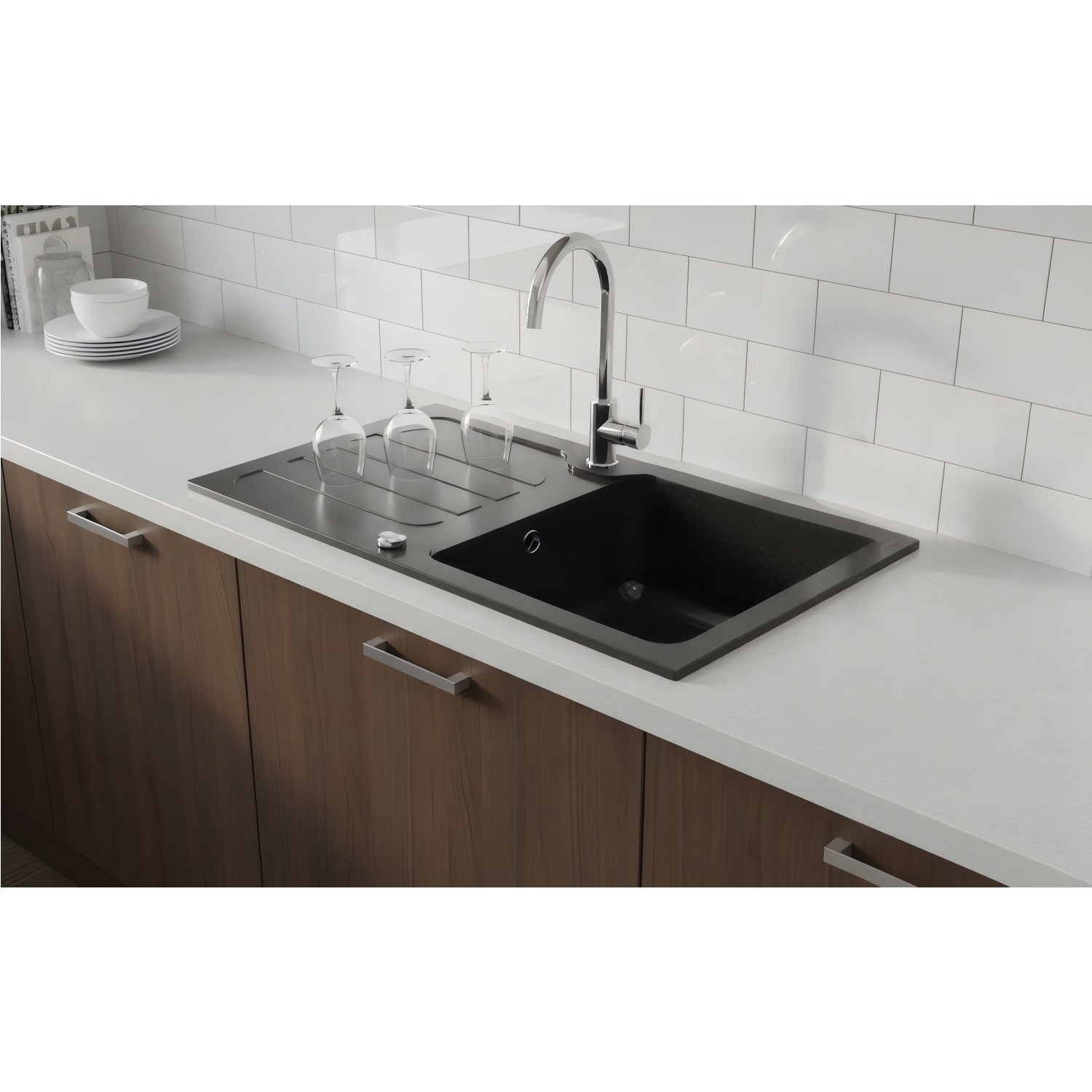The Laurie granite composite kitchen sink combines natural beauty with exceptional durability, creating a stunning and practical centre piece for your kitchen. Made from a precise blend of natural granite stone and high-performance resin, this material offers the timeless appeal of real stone with added strength and resilience for everyday use.