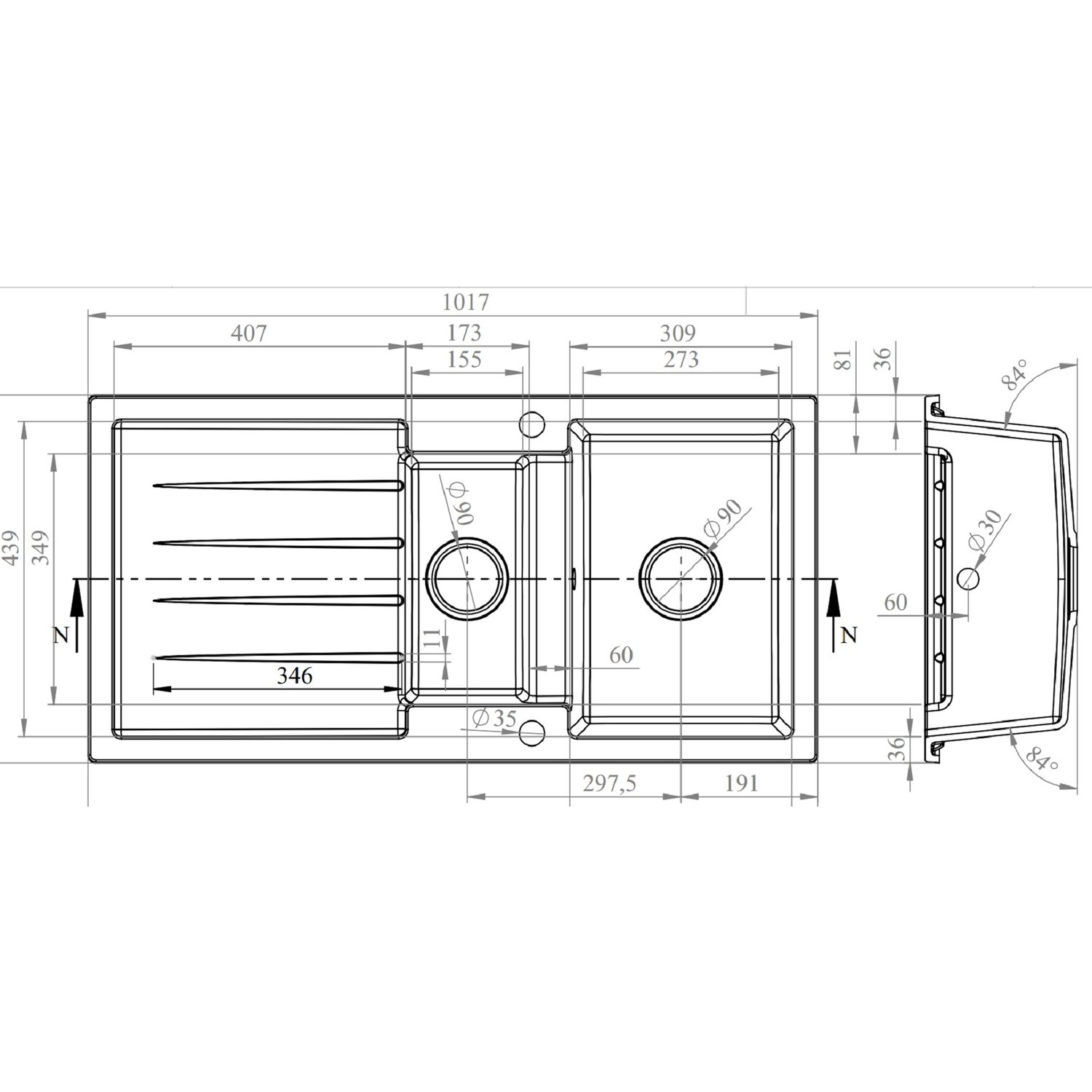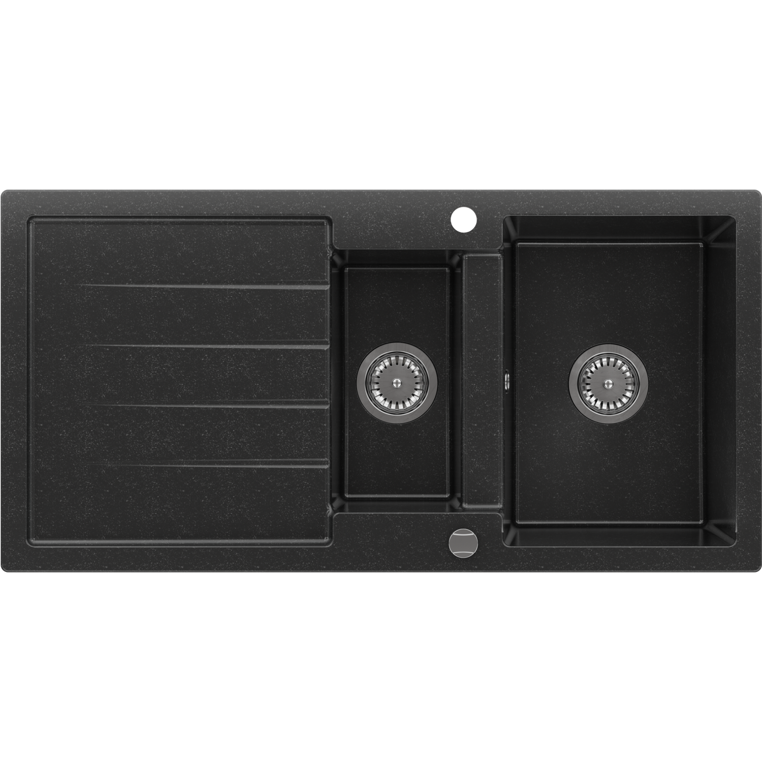 1.5 Bowl Black Granite Composite Inset Kitchen Sink & Waste - 1017 x 512mm - Laurie