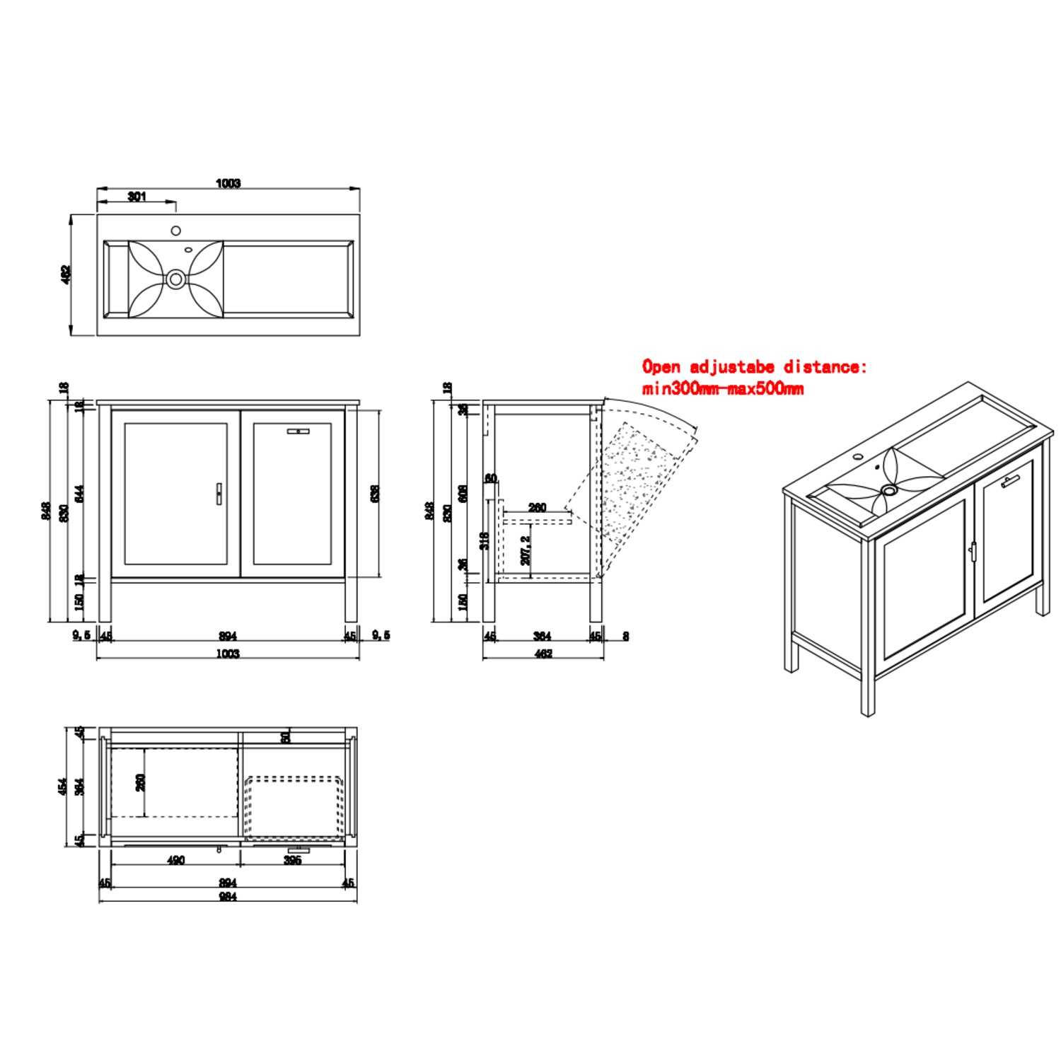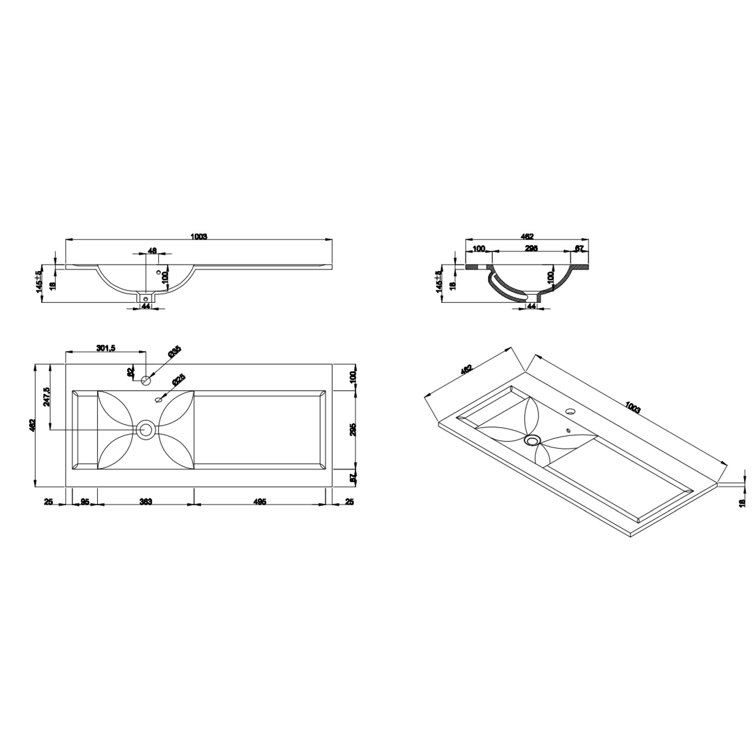 - Overall Dimensions (Including Basin): W1003 x D462 x H145 mm