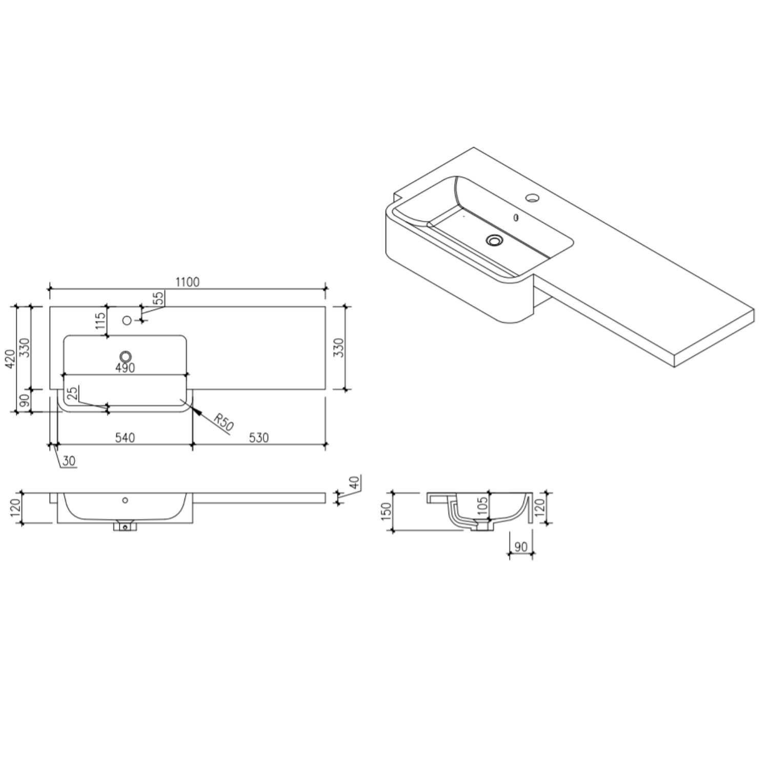 - Worktop Dimensions: W1100 x D420 x H40mm