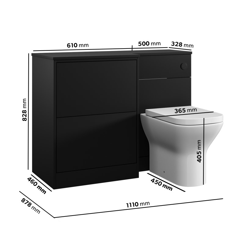 - Overall Dimensions Including Toilet: H 828mm x W1110mm x D878mm