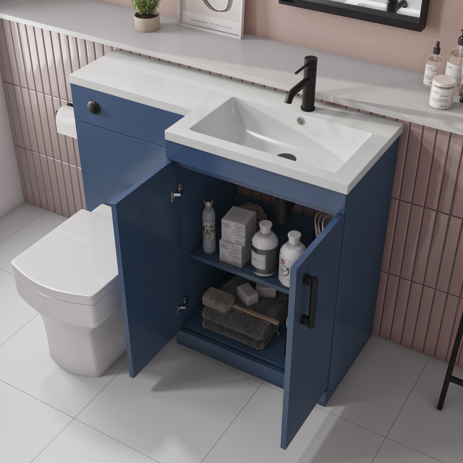 Make a statement in your bathroom with the Ashford Blue Toilet and Sink Unit. The toilet and sink unit features a right-hand design, so the basin is positioned on the right side of the toilet. Its contemporary design and ocean blue finish will add a modern feel to any bathroom.