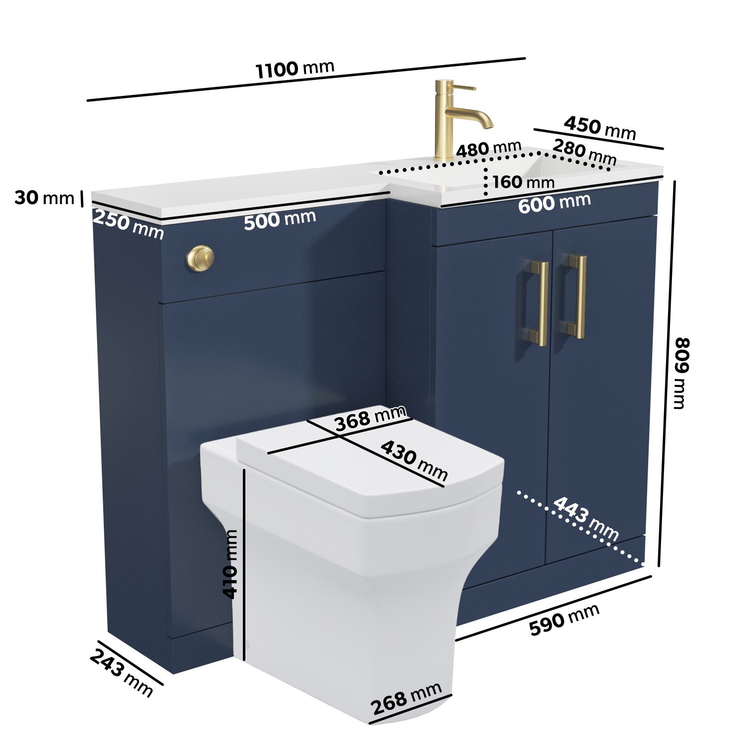 - Toilet Dimensions: H410 x W368 x D545 mm