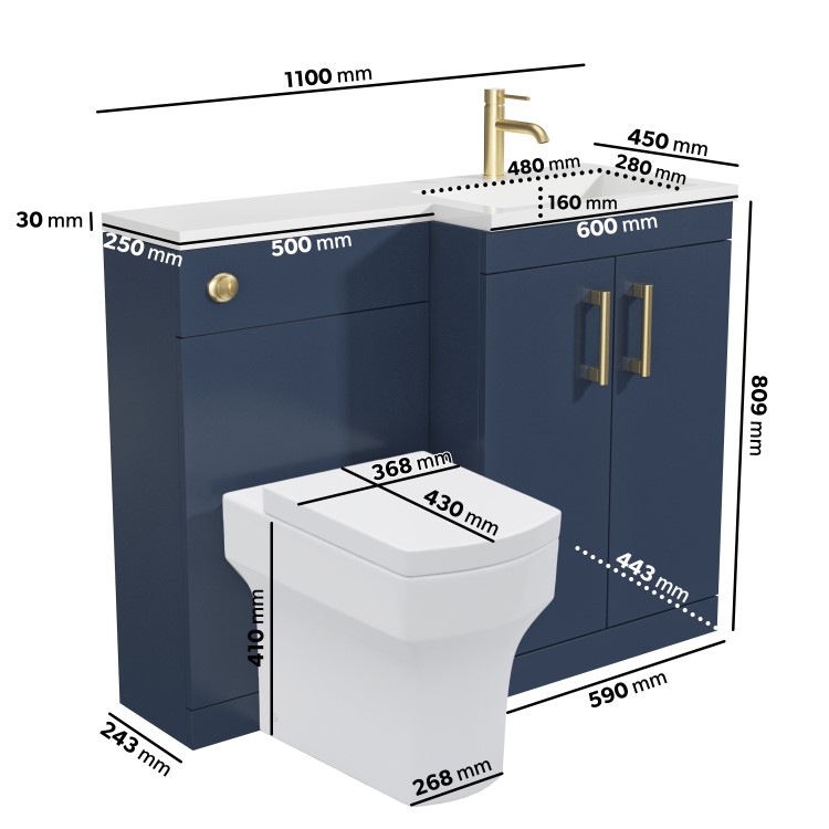 Please note, this unit comes with brushed brass handles, push button and overflow cover, however the toilet seat fittings and door hinges are chrome.