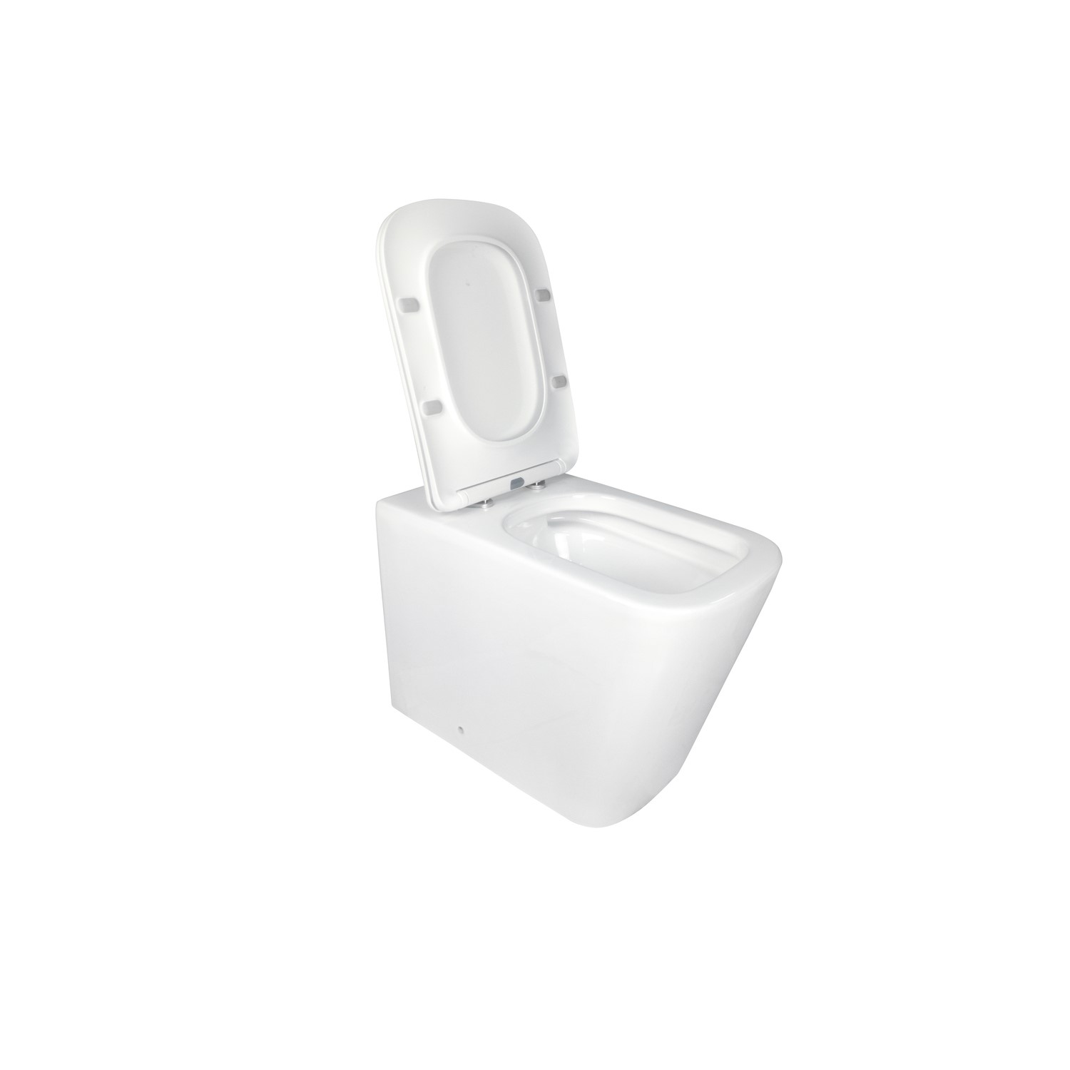 Rimless Soft-Close Toilet: Premium ceramic rimless toilet with a soft-close seat ensures long-lasting performance and quiet comfort.