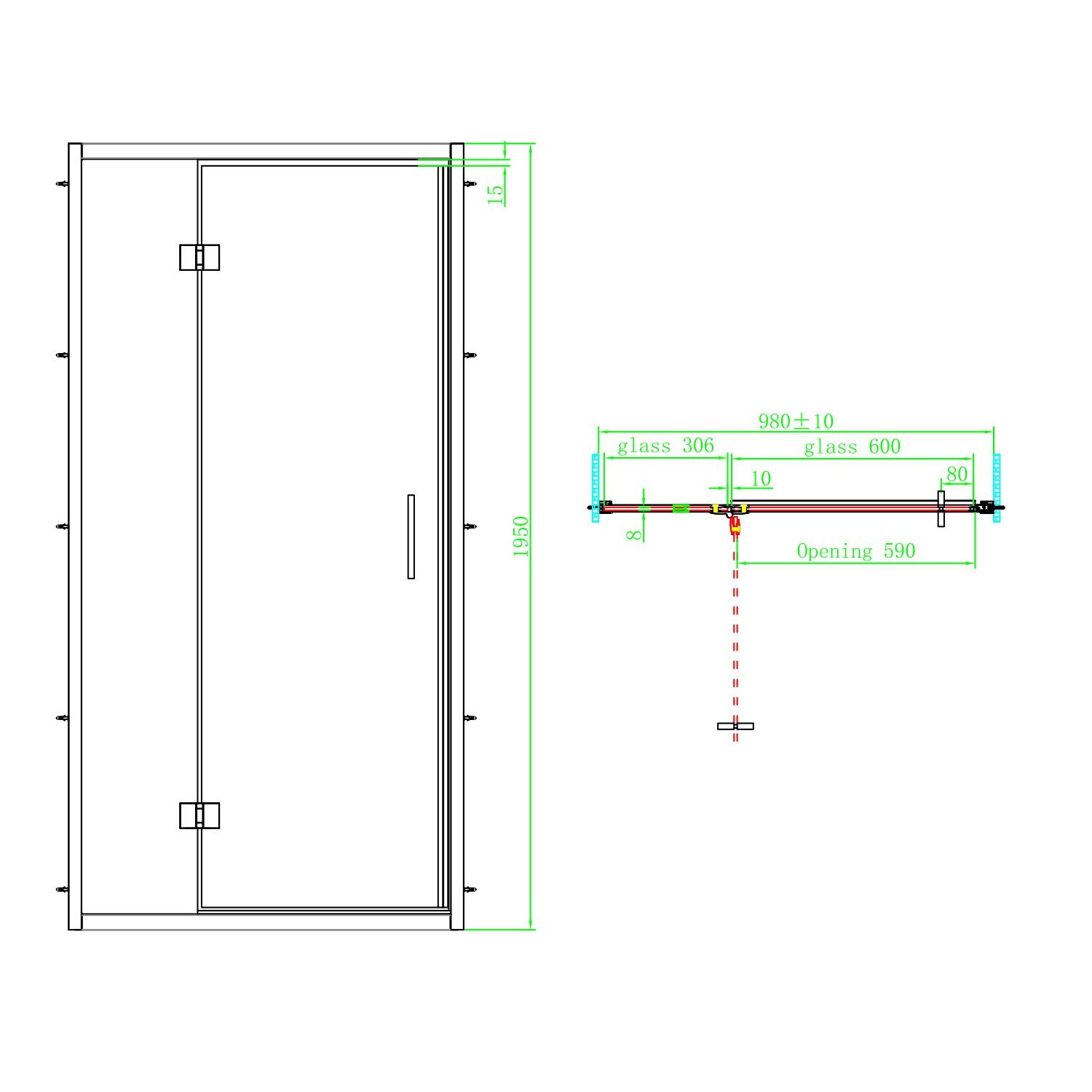 - Shower enclosures with hinges can open outwards providing a wide opening for maximum accessibility with a total range of 90 degrees.