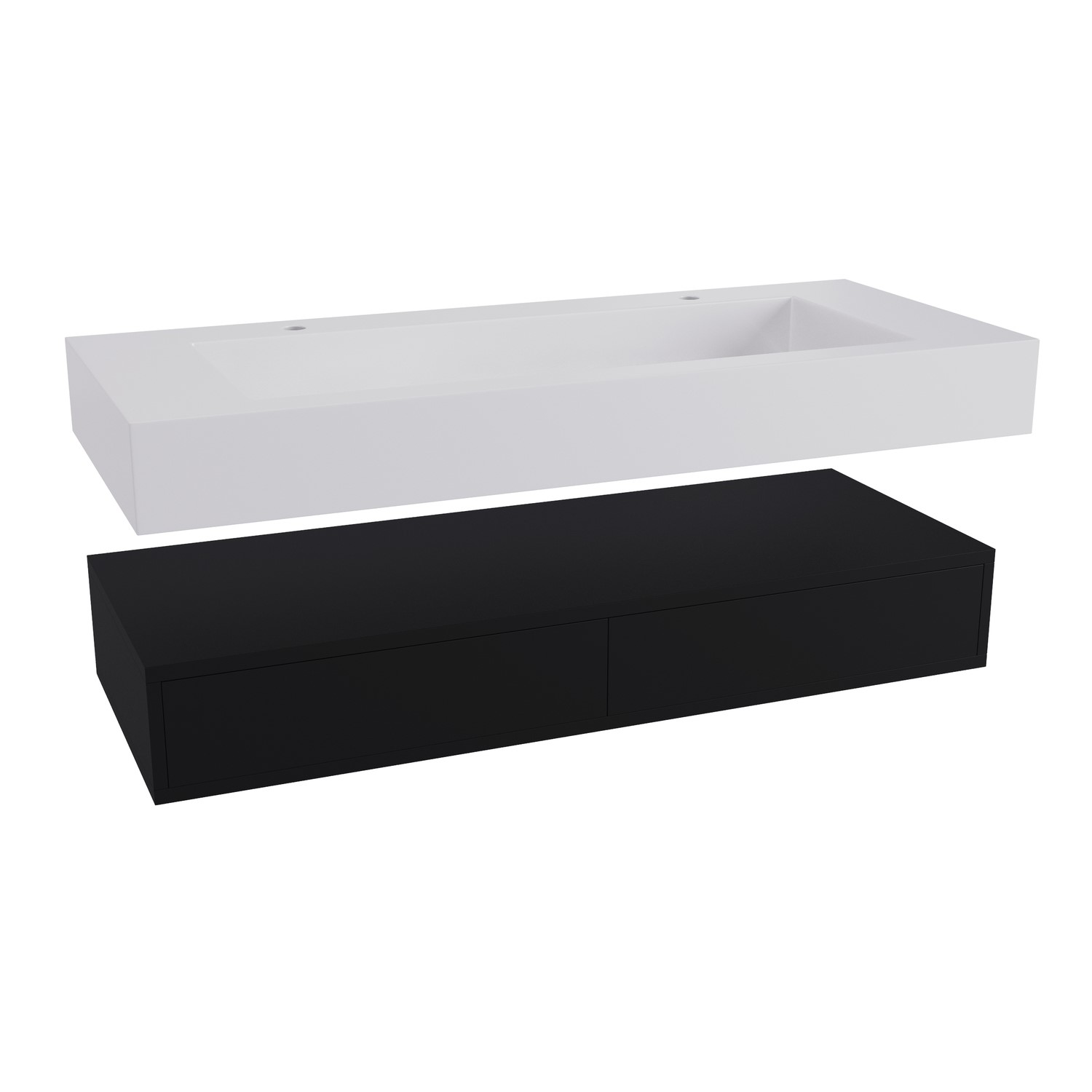 Bold Finish Combo: Deep matt black vanity contrasts beautifully with the white resin basin for modern sophistication.