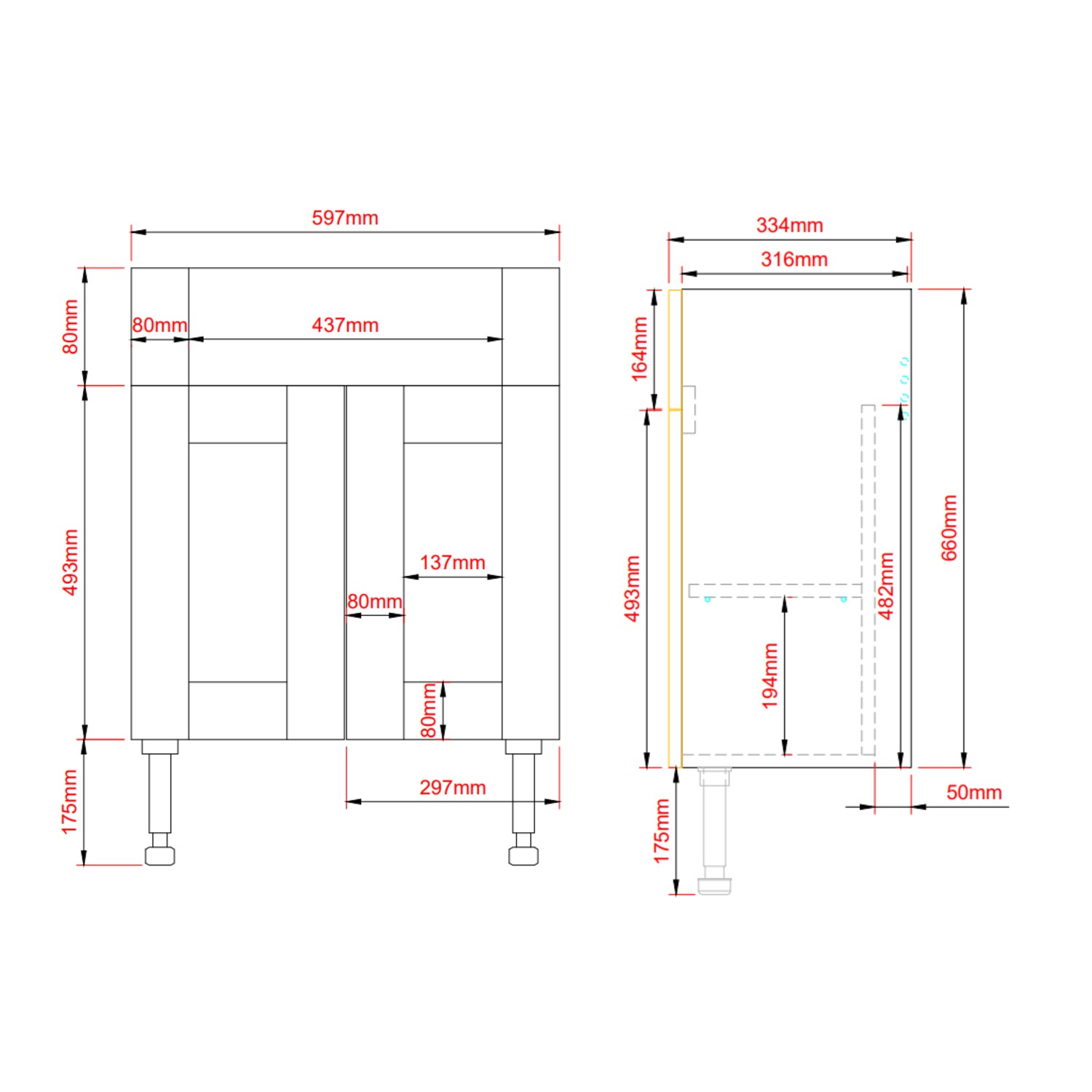- 1 x 600mm Vanity Unit