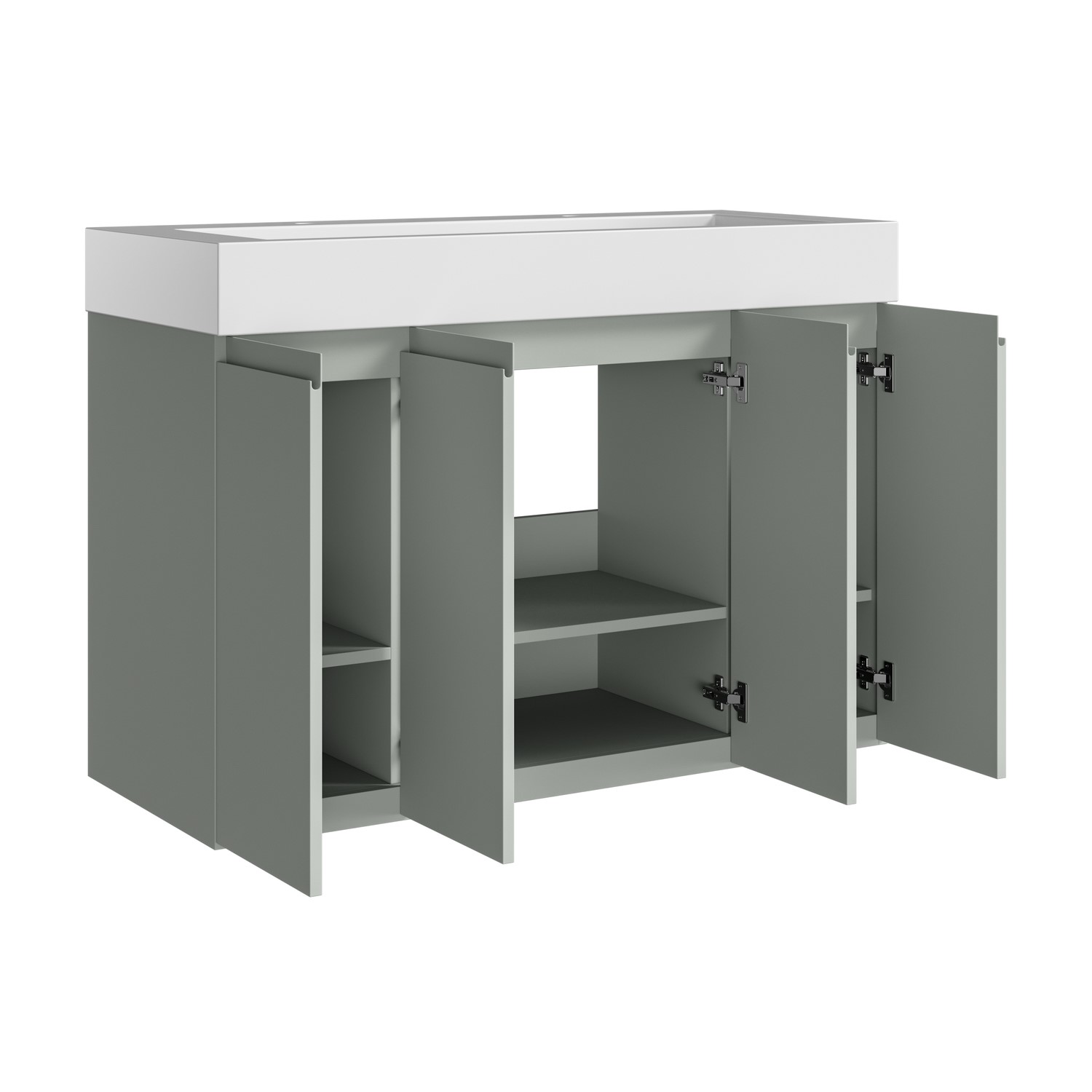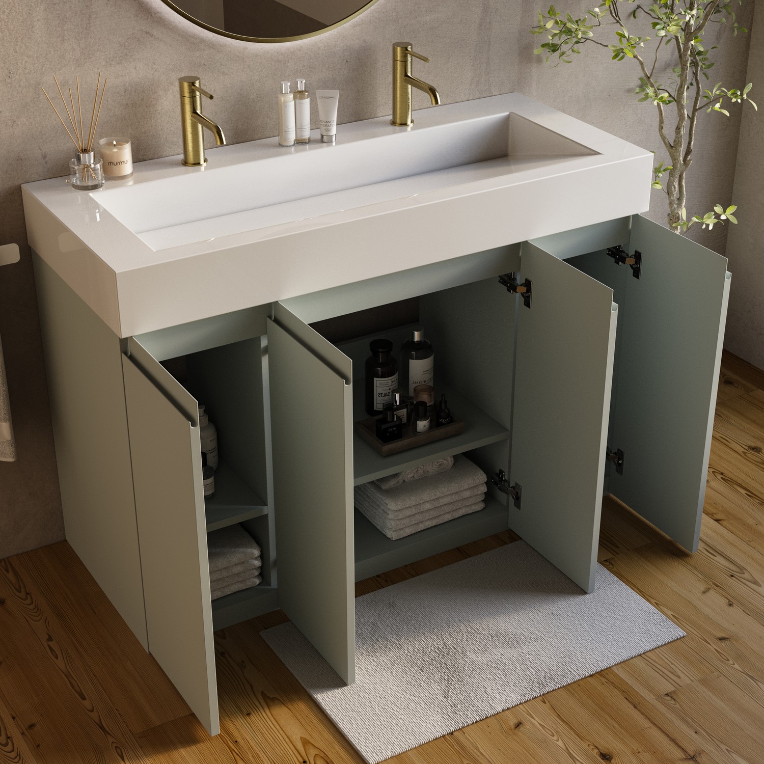Transform your bathroom with the clean, modern aesthetic of the Panama green 1200mm freestanding double vanity unit, perfect for busy households. Spacious yet stylish, this larger vanity is perfect for family bathrooms or anyone needing more storage. Soft-close doors with concealed handles maintain a sleek silhouette for a effortlessly stylish touch. The matt green finish adds a light, fresh, and effortlessly stylish touch, and is finished via powder coating to ensure long lasting wear and resistance to finger prints and general day to day markings.