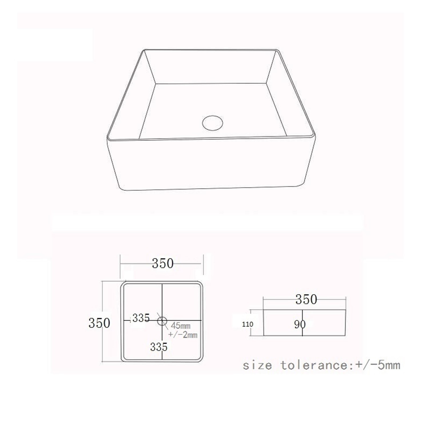 - Basin Dimensions:H110mm x W350mm x D350mm