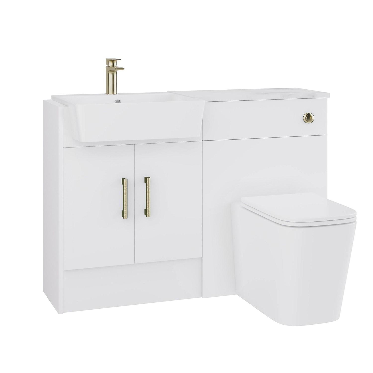 Upgrade your bathroom and set up the perfect storage solution with our Ontario fitted bathroom furniture range. Versatile as well as stylish, it will look great in any bathroom. These units feature coordinating handles and push button. It comes complete with a semi-recessed basin plus the concealed cistern, so all you need is a mixer tap and a back-to-wall toilet to finish off your desired look. The basin comes with a prefitted chrome overflow cover, but a brass one is also included in your order to change. The fully reversible modular design means you can arrange the toilet, basin, and storage units in any order to suit your bathroom layout, making it a flexible choice for different spaces. You can also customise the door opening to left or right.