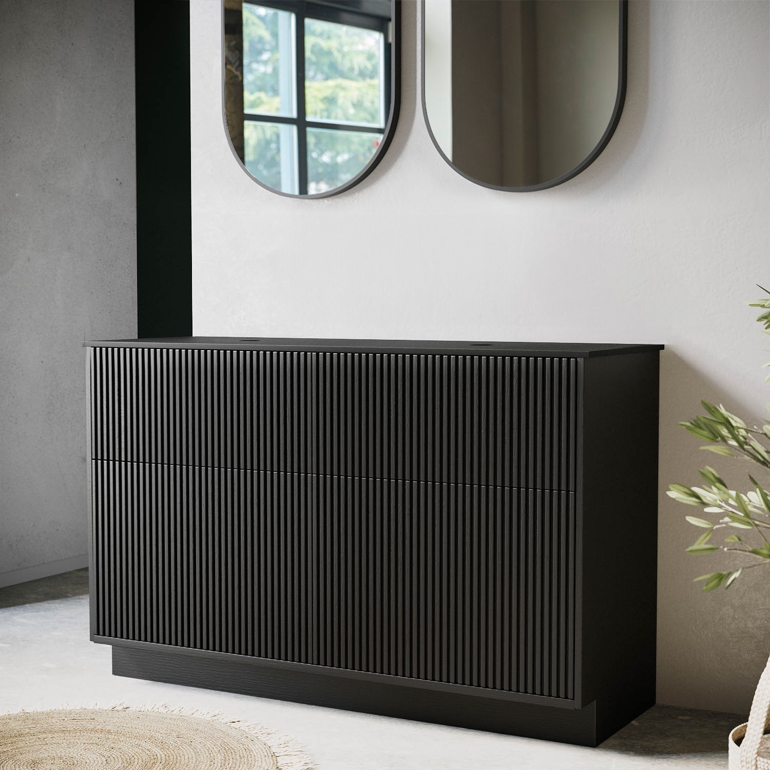 - Modern large freestanding countertop vanity unit with Ribbed design in matt black