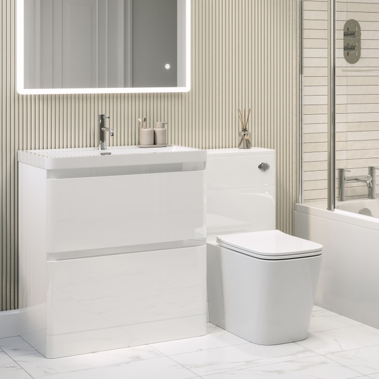 This pre-assembled set ensures a quick and stress-free installation. The toilet unit is designed to match the Pendle white gloss range, ensuring a cohesive look throughout your bathroom. It comes complete with a coordinating ceramic back-to-wall toilet in a sleek square shape and glossy white finish. The rimless bowl enhances hygiene and makes cleaning easier, while the soft-close seat with a quick-release function adds convenience and comfort. A concealed cistern with a dual flush system offers efficient water use, and the chrome push button flush plate provides a refined finishing touch that elevates the overall design. Whether you're renovating or refreshing, the Pendle unit delivers a smart, space-saving solution without compromising on style. While the unit is water-resistant, it isn't waterproof so we recommend wiping away any splashes or spills to help keep it looking its best and performing well over time.