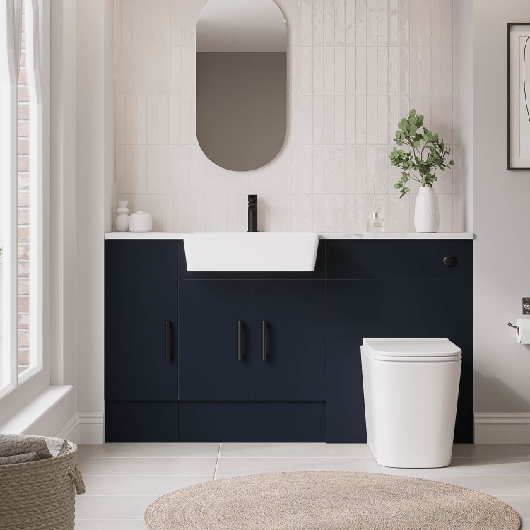 Upgrade your bathroom and set up the perfect storage solution with our Ontario fitted bathroom furniture range. Versatile as well as stylish, it will look great in any bathroom. These units feature coordinating handles and push button. It comes complete with a semi-recessed basin plus the concealed cistern, so all you need is a mixer tap and a back-to-wall toilet to finish off your desired look. The basin comes with a prefitted chrome overflow cover, but a black one is also included in your order to change. The fully reversible modular design means you can arrange the toilet, basin, and storage units in any order to suit your bathroom layout, making it a flexible choice for different spaces. You can also customise the door opening to left or right.