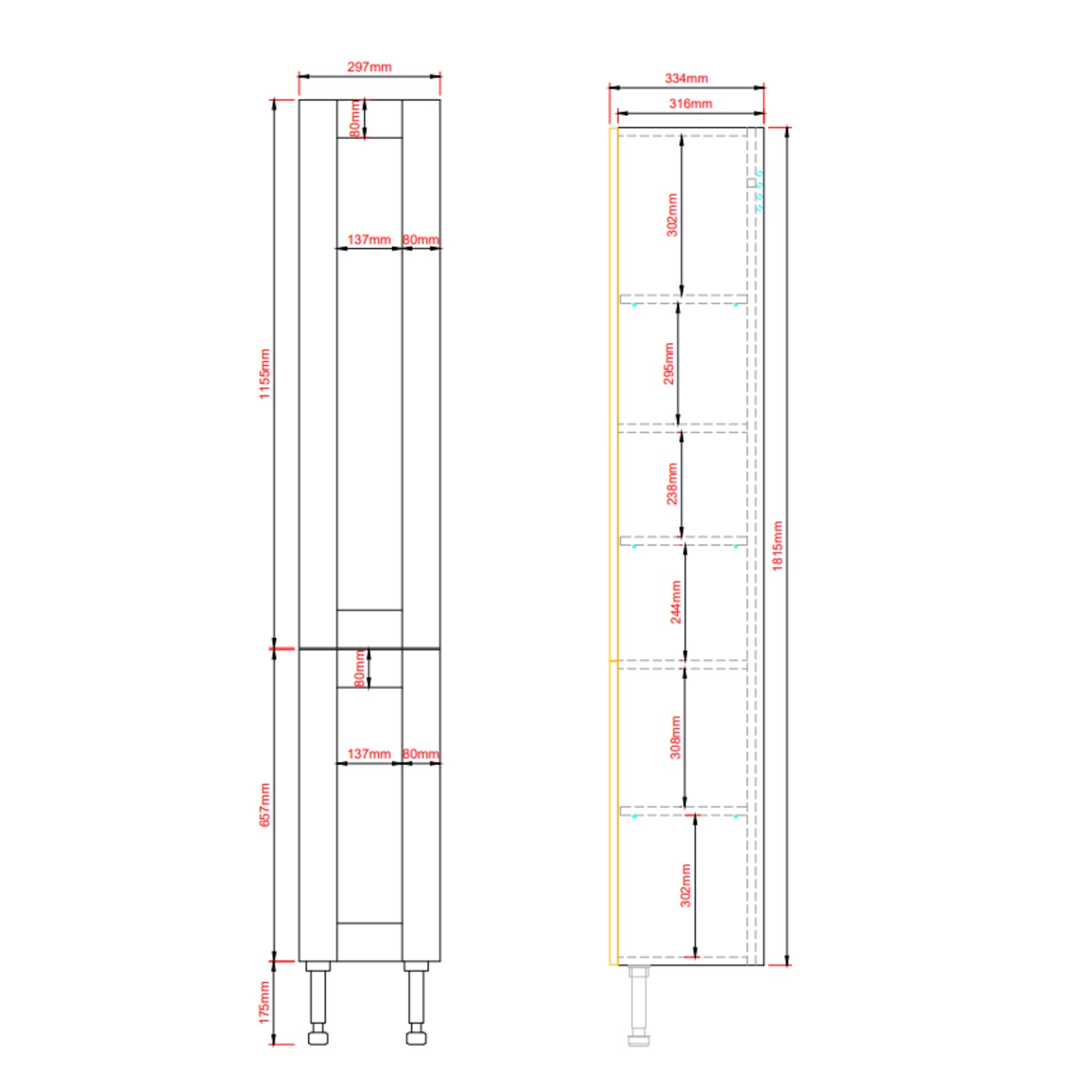 - 1x 300mm Tall Storage Unit