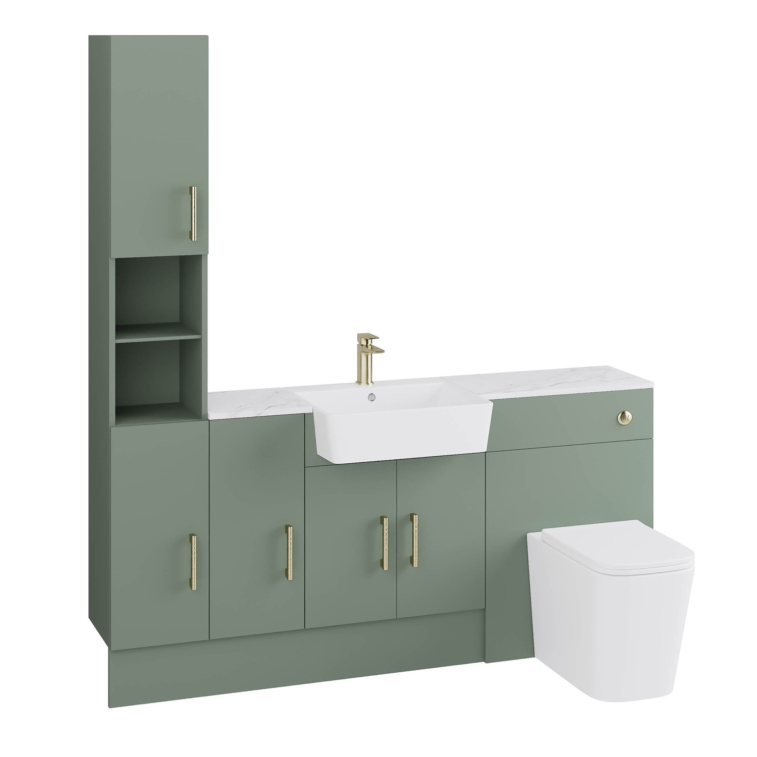 Upgrade your bathroom and set up the perfect storage solution with our Ontario fitted bathroom furniture range. Versatile as well as stylish, it will look great in any bathroom. These units feature coordinating handles and push button. It comes complete with a semi-recessed basin plus the concealed cistern, so all you need is a mixer tap and a back-to-wall toilet to finish off your desired look. The basin comes with a prefitted chrome overflow cover, but a brass one is also included in your order to change. The fully reversible modular design means you can arrange the toilet, basin, and storage units in any order to suit your bathroom layout, making it a flexible choice for different spaces. You can also customise the door opening to left or right.