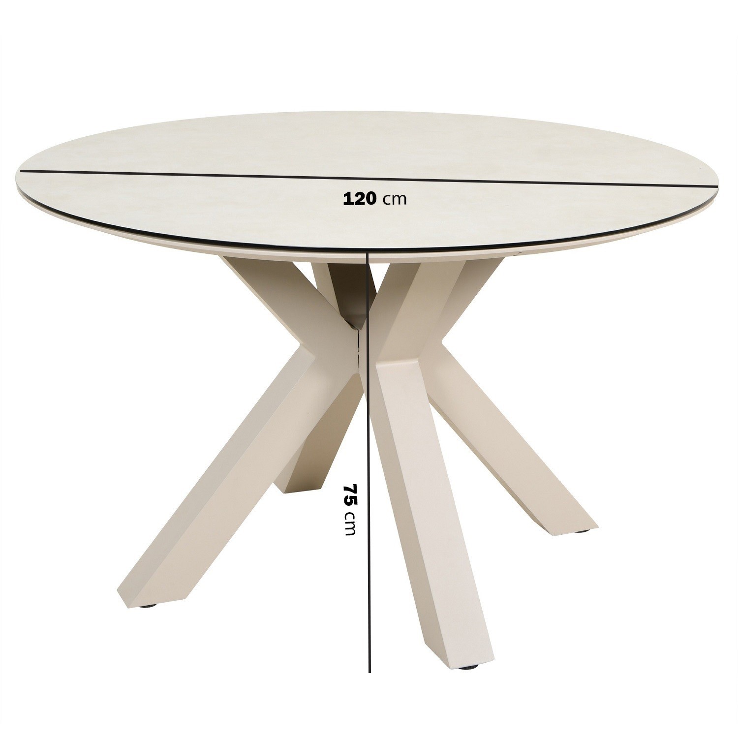 - Table dimensions: W120 x D120 x H75 cm