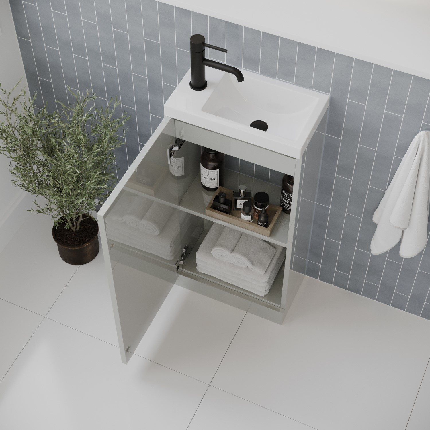 Enhance your bathroom with this Ashford floor standing vanity basin unit. Characterised by it's gloss grey finish, it has that traditional meets modern styling that’ll look great in any style of bathroom.