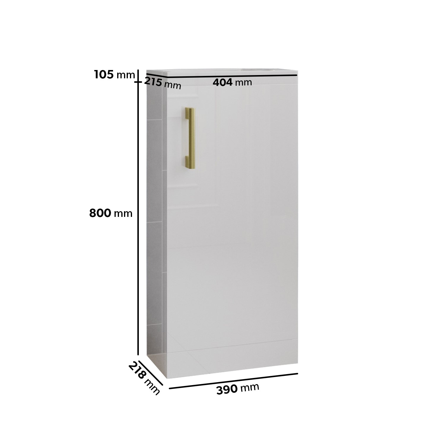 - Overall Basin Vanity Dimensions (including basin): H800mm x W404mm x D218mm