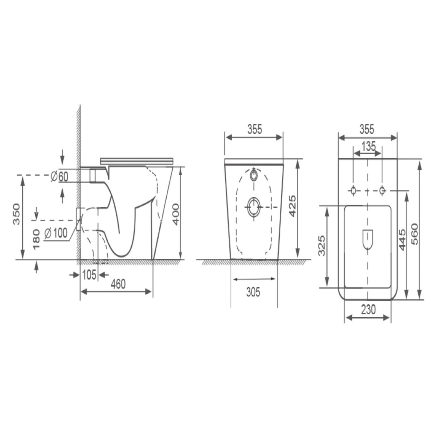 - Toilet Dimensions: H400mm x W355mm x D560mm