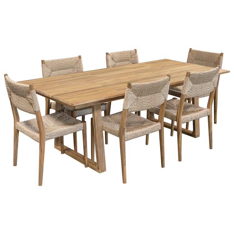 Enhance your outdoor dining experience with this beautifully crafted 6-seater garden dining set. Made from premium solid Acacia wood, this stylish yet provides comfort, practicality and longevity. The twisted wicker on the chairs offers an elegant, handwoven look featuring triangle-shaped patterning on the seat and over the front and back of the backrest while providing superior support. This set is perfect for alfresco dining, garden parties and more. It’s low maintenance and easy to clean too, so you can keep it looking good all year round.