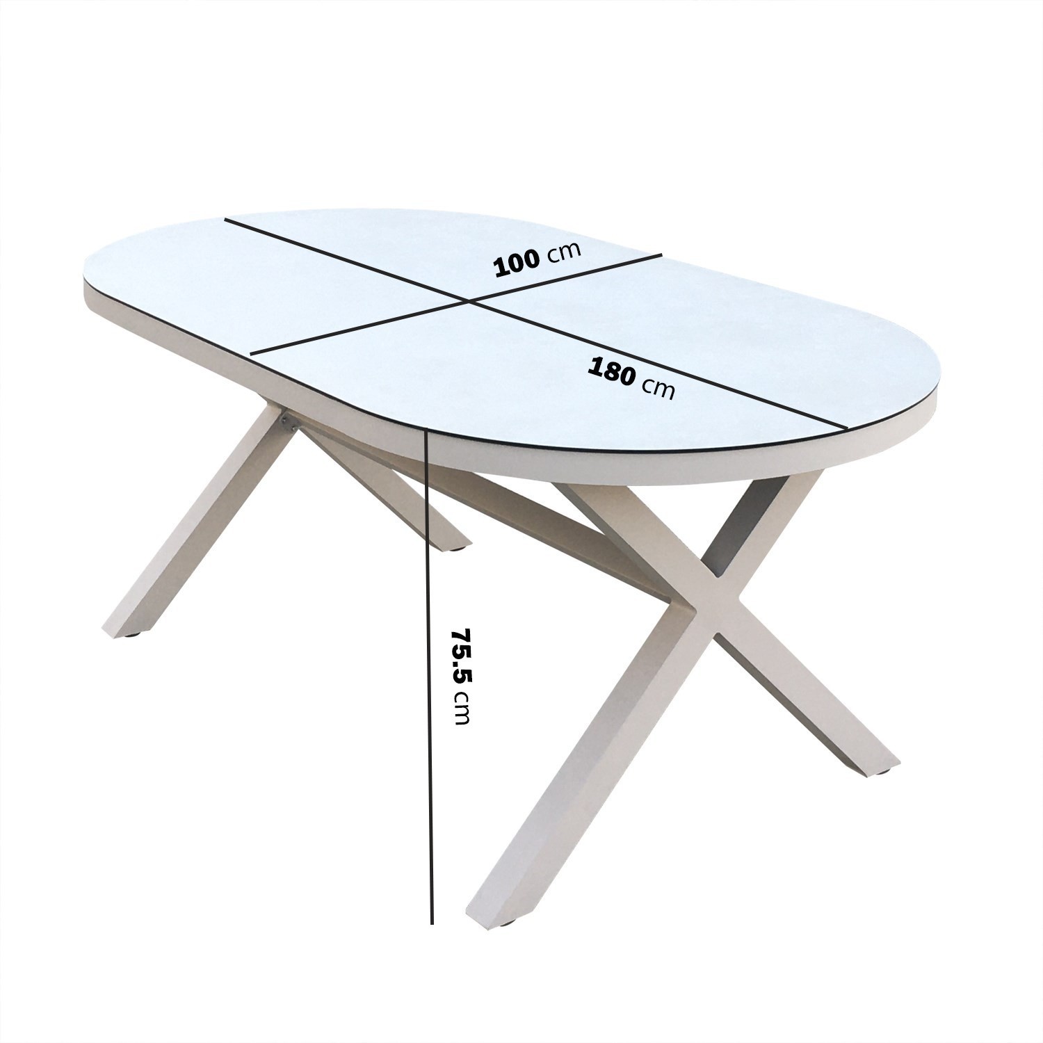 - Table dimensions: W100 x D180 x H76 cm