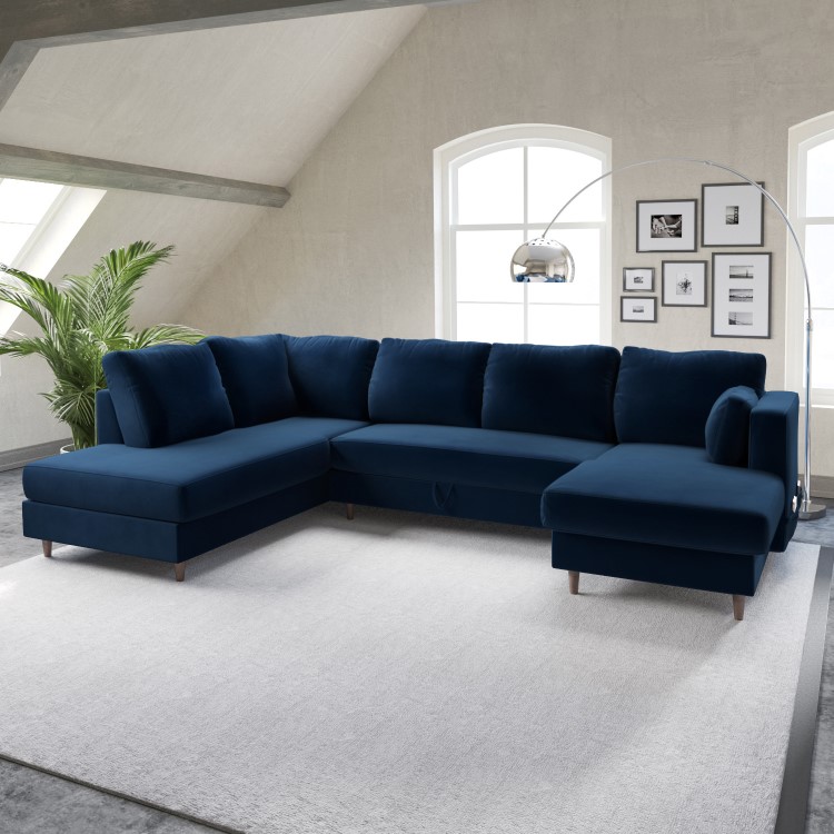 Create the ultimate relaxation space in your living room with the Boe navy u shape sofa bed. Stylish yet practical, it quickly converts into a bed, plus it has an ottoman storage section which is perfect for keeping blankets and bedding handy. This sofa is very practical, with handy side pockets you will never lose your tv remote again! Minimal assembly is required, just slot the 3 pieces together and screw the legs in. It'll be ready in no time!