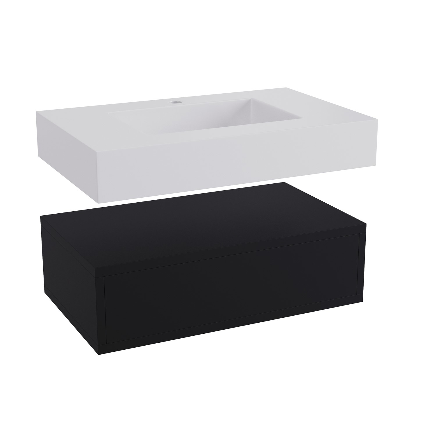 Bold Finish Combination: Striking matt black vanity unit paired with a white basin for modern sophistication and practicality.