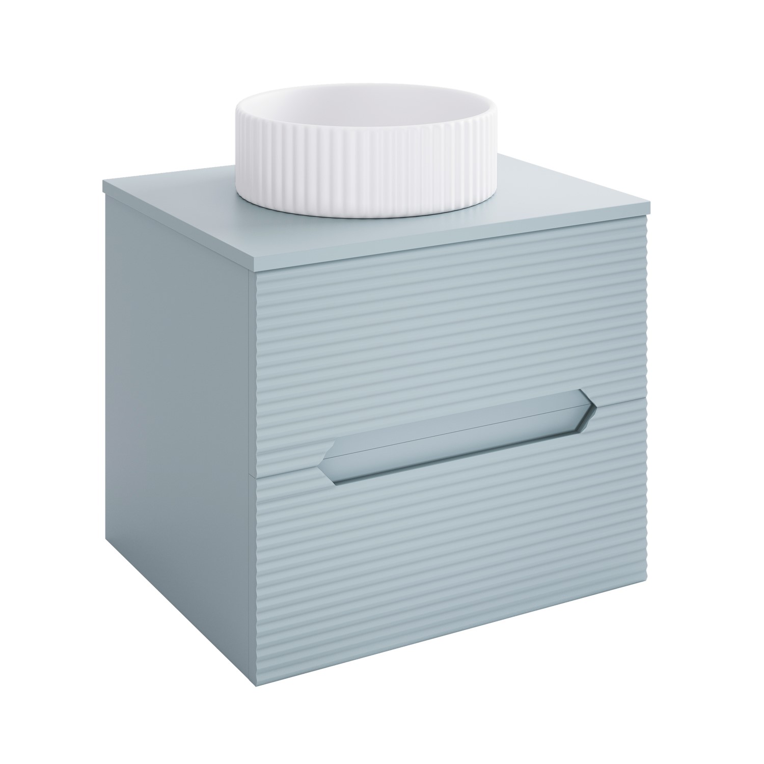 Stylish and space-saving, the Melbourne blue 600mm wall hung vanity unit blends functionality with refined modern design. Finished with fluted drawer fronts, this floating vanity brings both architectural texture and a soft pop of colour to modern bathrooms. This unit is designed to last while offering a clean, versatile look that suits a variety of styles. Its wall-hung design makes it an excellent choice for smaller to medium-sized bathrooms, as it maximises floor space while keeping the room feeling open.