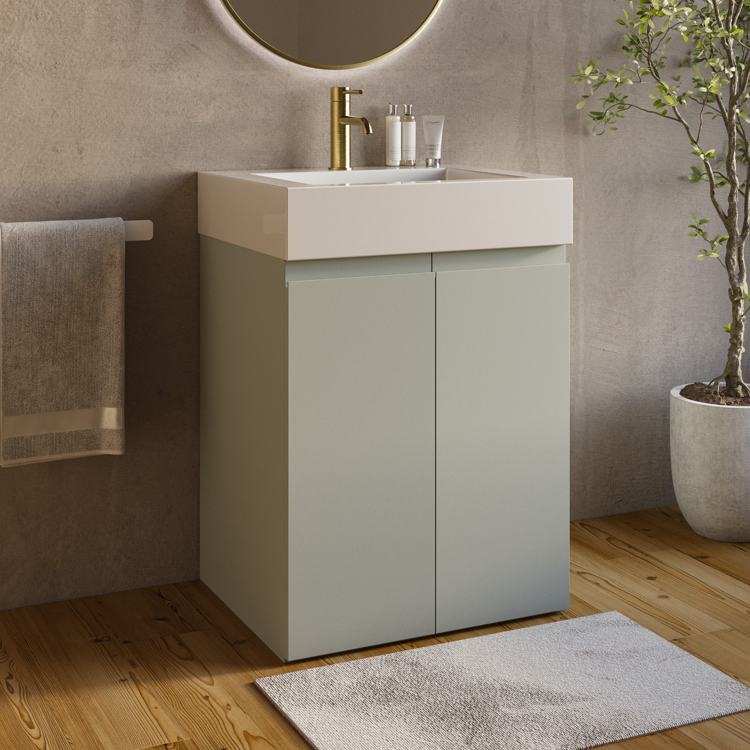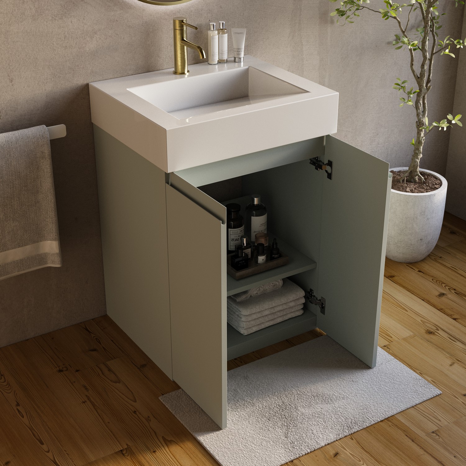 Transform your bathroom with the clean, modern aesthetic of the Panama green 600mm freestanding basin vanity unit. This sleek unit features soft-close doors with concealed handles, adding a minimalist finish to your bathroom while offering ample storage for everyday essentials. The matt green finish adds a light, fresh, and effortlessly stylish touch, and is finished via powder coating to ensure long lasting wear and resistance to finger prints and general day to day markings.