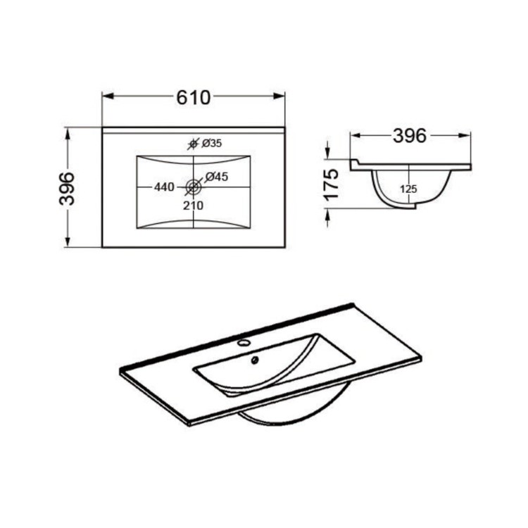 - Basin finish: Gloss white