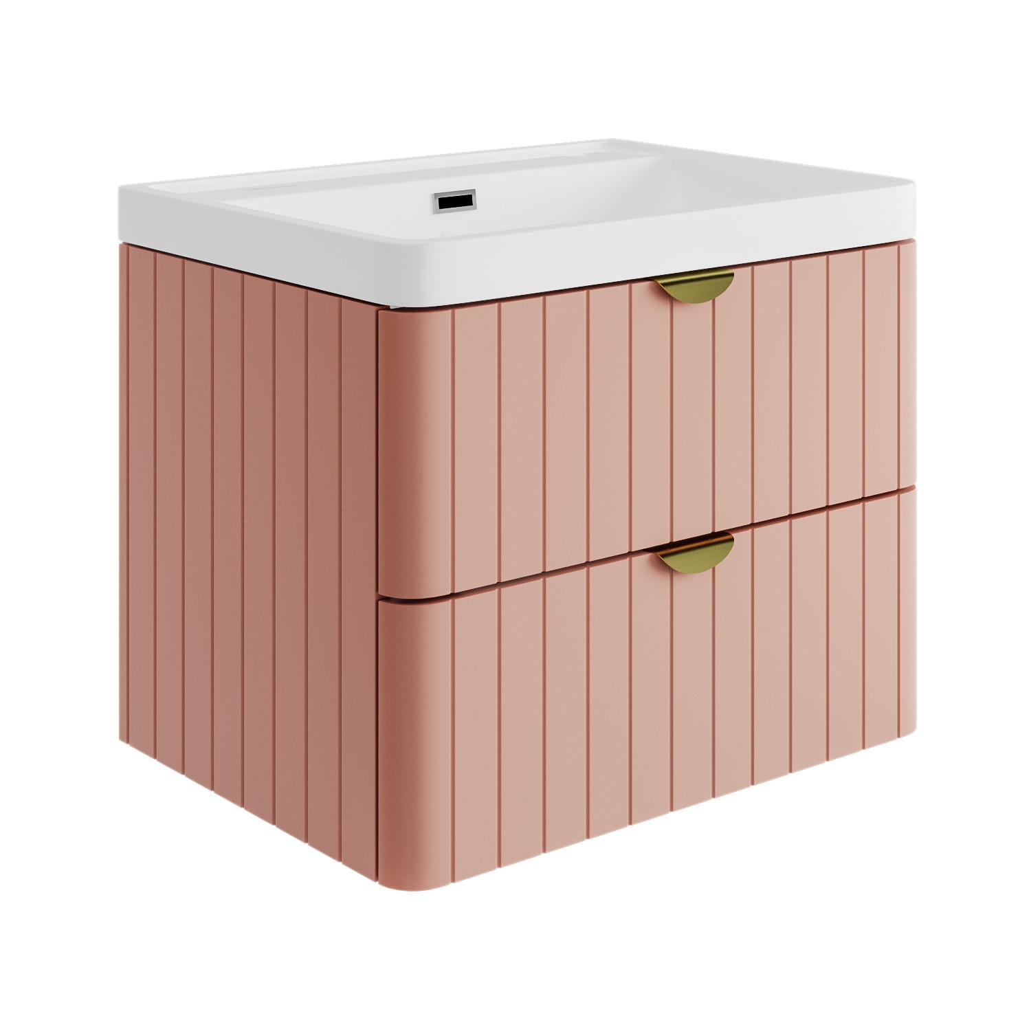 Make the most of your bathroom floor space and with this chic wall hung vanity unit in a matt pink. The two drawers, each with a sleek curved lip handle, provide plenty of storage space, plus they have a soft-closing mechanism to prevent slamming and wear and tear. The basin is included, which has one central tap hole; a tap isn’t included, so you’re free to choose one of your choice.