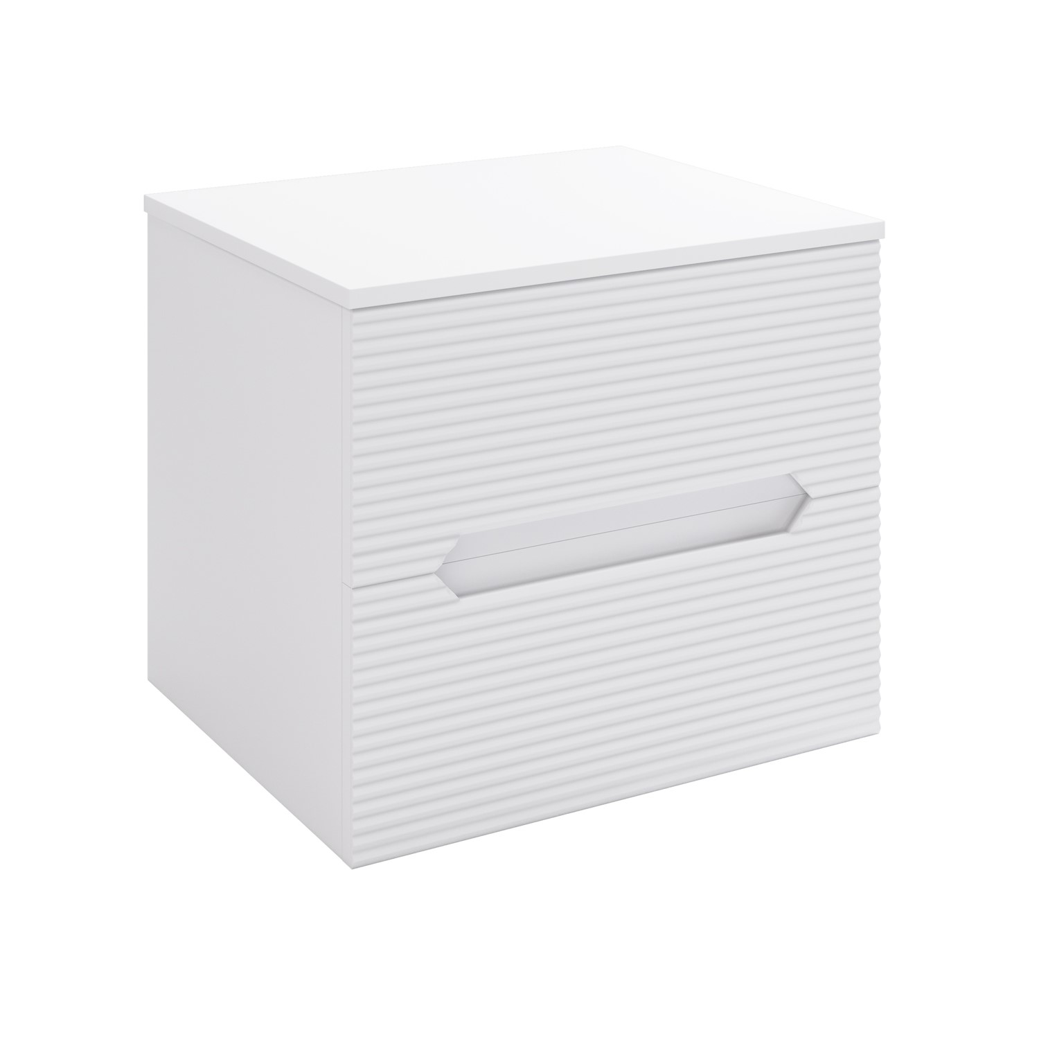 Stylish and space-saving, the Melbourne white 600mm wall hung vanity unit blends functionality with refined modern design. Finished with fluted drawer fronts, this floating vanity brings both architectural texture and a fresh matt white finish to modern bathrooms. This unit is designed to last while offering a clean, versatile look that suits a variety of styles. Its wall-hung design makes it an excellent choice for smaller to medium-sized bathrooms, as it maximises floor space while keeping the room feeling open.