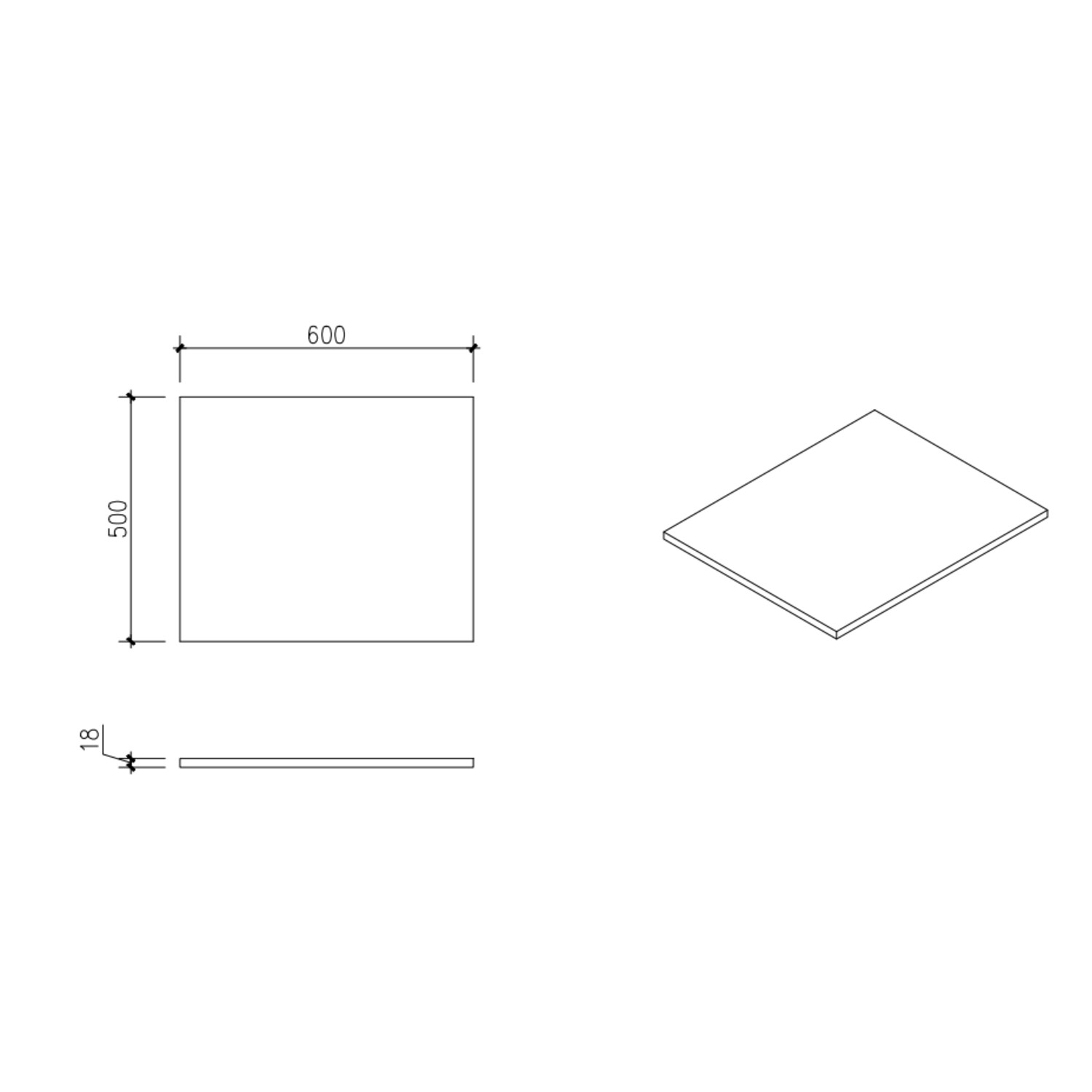 - Overall Dimensions: H518 x W600 x D500 mm (Please note, the main footprint of this vanity unit is W590 x D495 mm, however the overall dimensions are slightly bigger due to the worktop overhang)