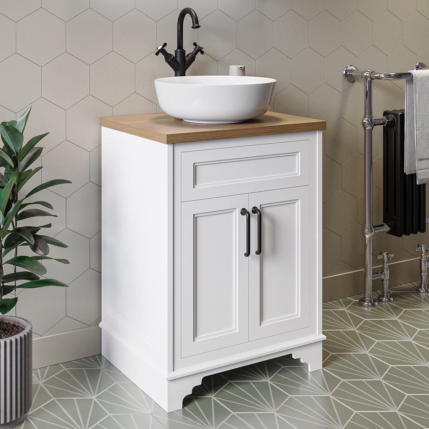 Give your bathroom a fresh, modern look with the Camden 600mm vanity unit. Part of the Camden range of furniture, this unit is finished with matt white paint so it's muted colour palette would look great in any bathroom. Manufactured to the highest standard, this unit features traditional shaker detailing throughout. An Arabella ceramic basin also comes with the unit; a tap isn't included, so you're free to choose your favourite.