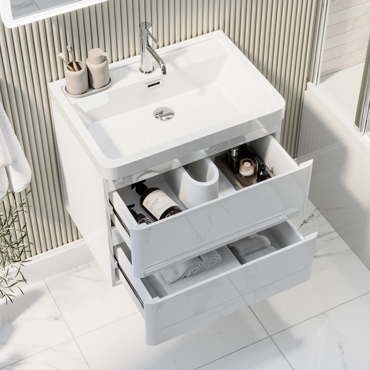 Dual Drawer Storage: Two seamless, handleless drawers provide generous space for organising bathroom essentials.