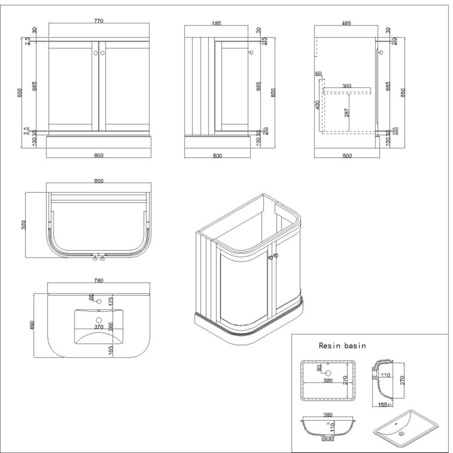 - Overall Basin Vanity Dimensions (including basin): H850mm x W800mm x D500mm