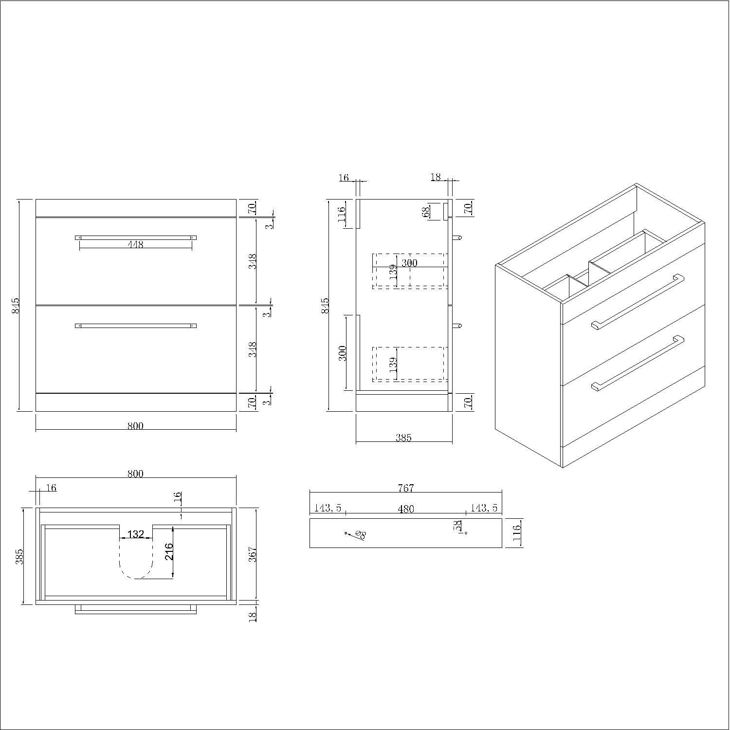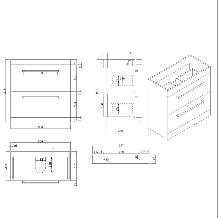 - Overall Basin Vanity Dimensions (including basin): H850mm x W810mm x D396mm
