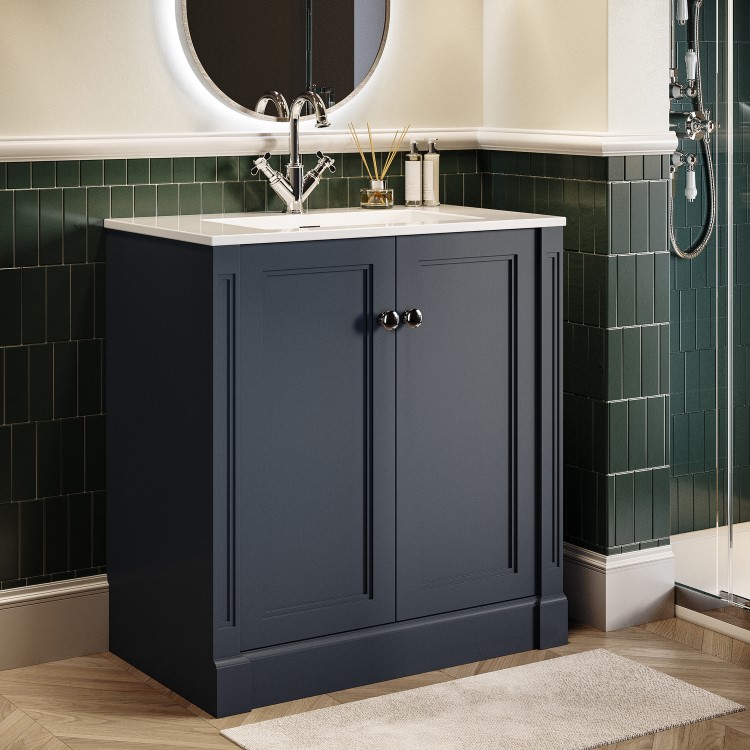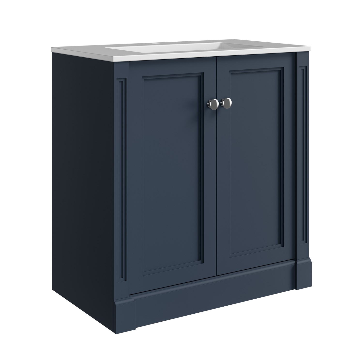 Detailed Shaker Design: Classic mouldings in a indigo finish bring timeless elegance to your bathroom effortlessly.